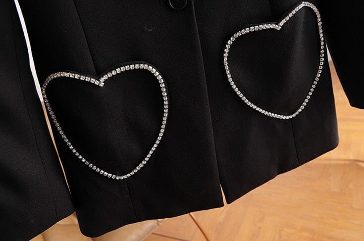 Immerse yourself in luxury and high-street fashion with the meticulous handcrafted sequin blazer. Featuring a premium polyester-cotton woven fabric blend, slim modern-design, and a dazzling sequin heart shaped accent styling. Make sure all eyes are on you this season with this exclusive piece.